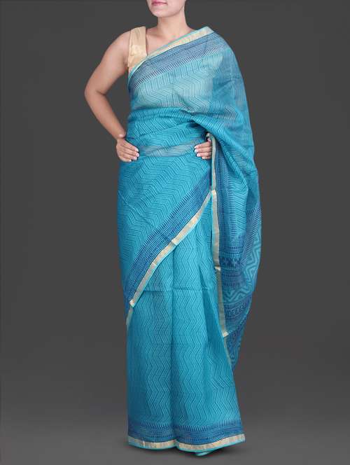 #1 blue chevron print kota doria silk saree & similar products...