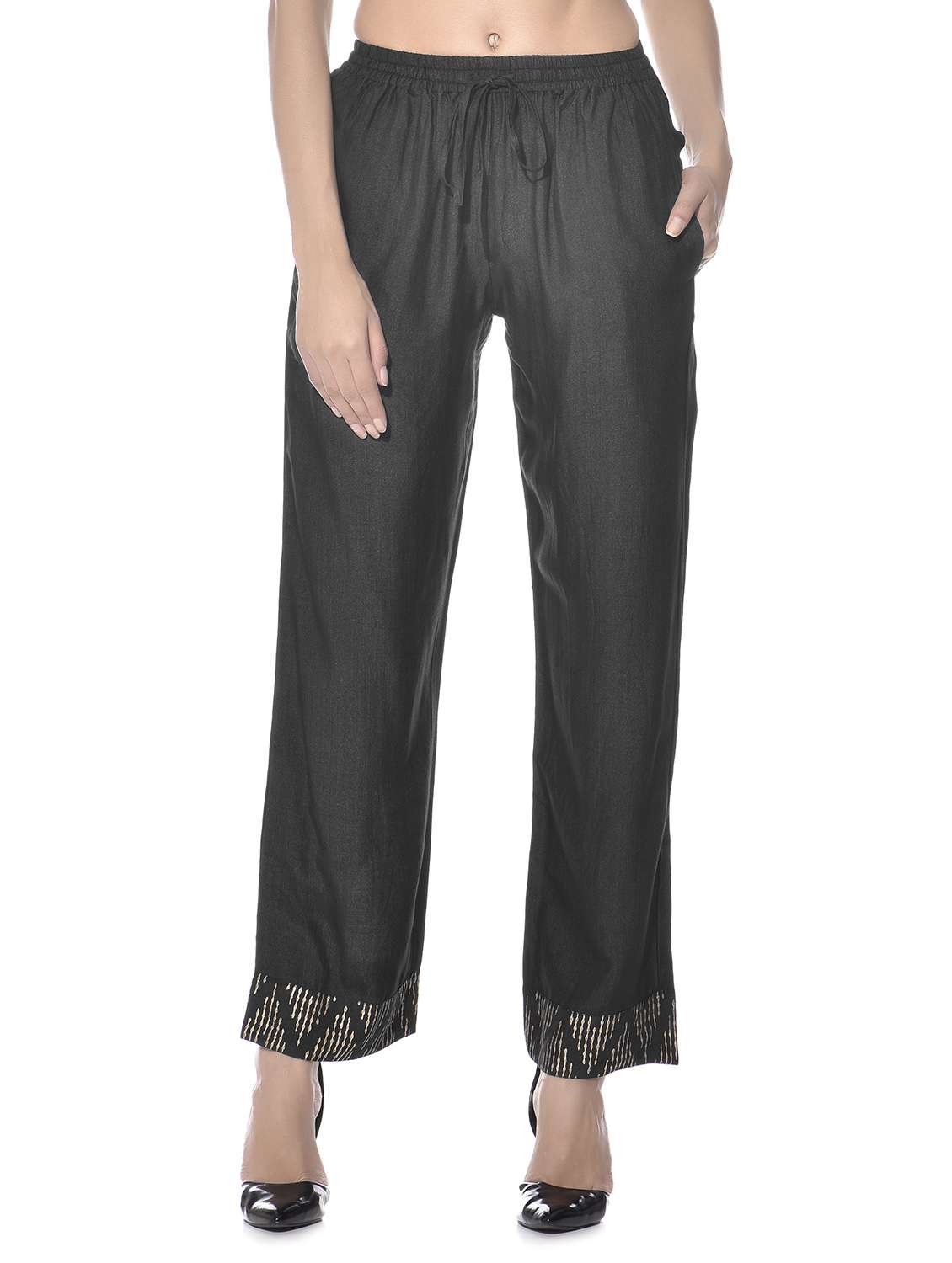 #1 black tussar cotton drawstring hand block print palazzos & इसी तरह के उत्पाद...