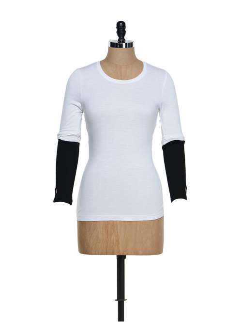 #1 round neck white top with monochrome sleeves & similar products...