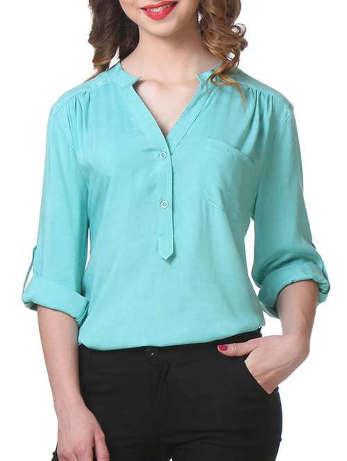 #1 plain solid roll up sleeves rayon top & similar products...