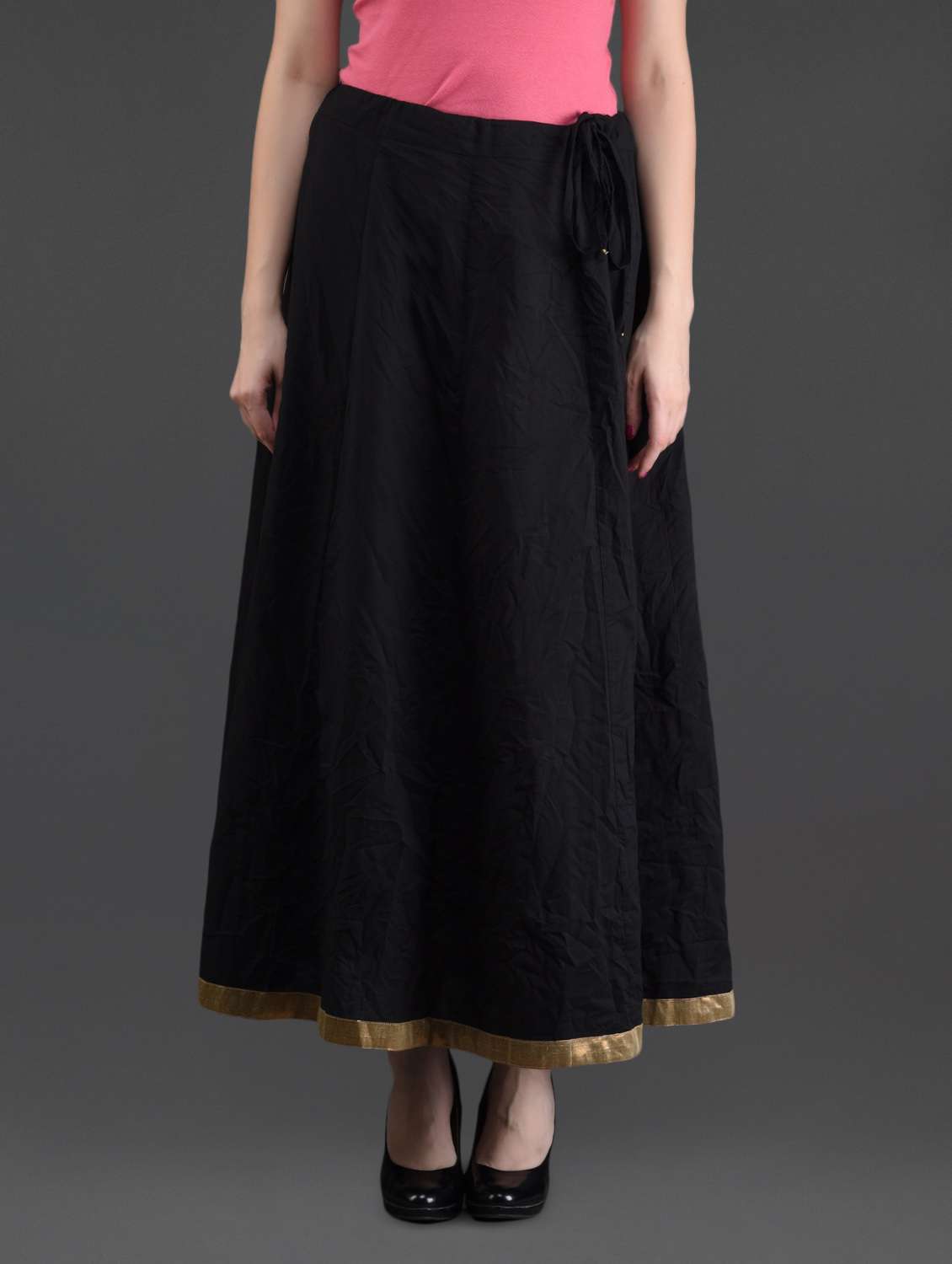 #1 golden border black long flared skirt & similar products...