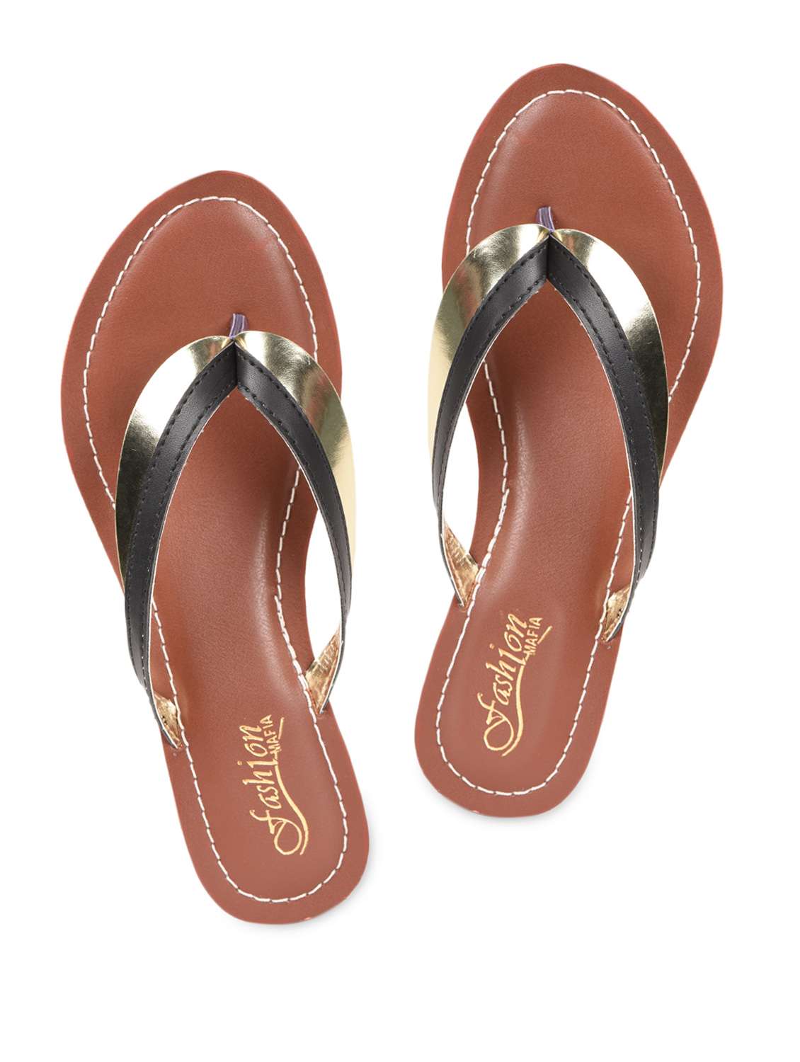 #3 black & golden strap flat sandals & similar products...