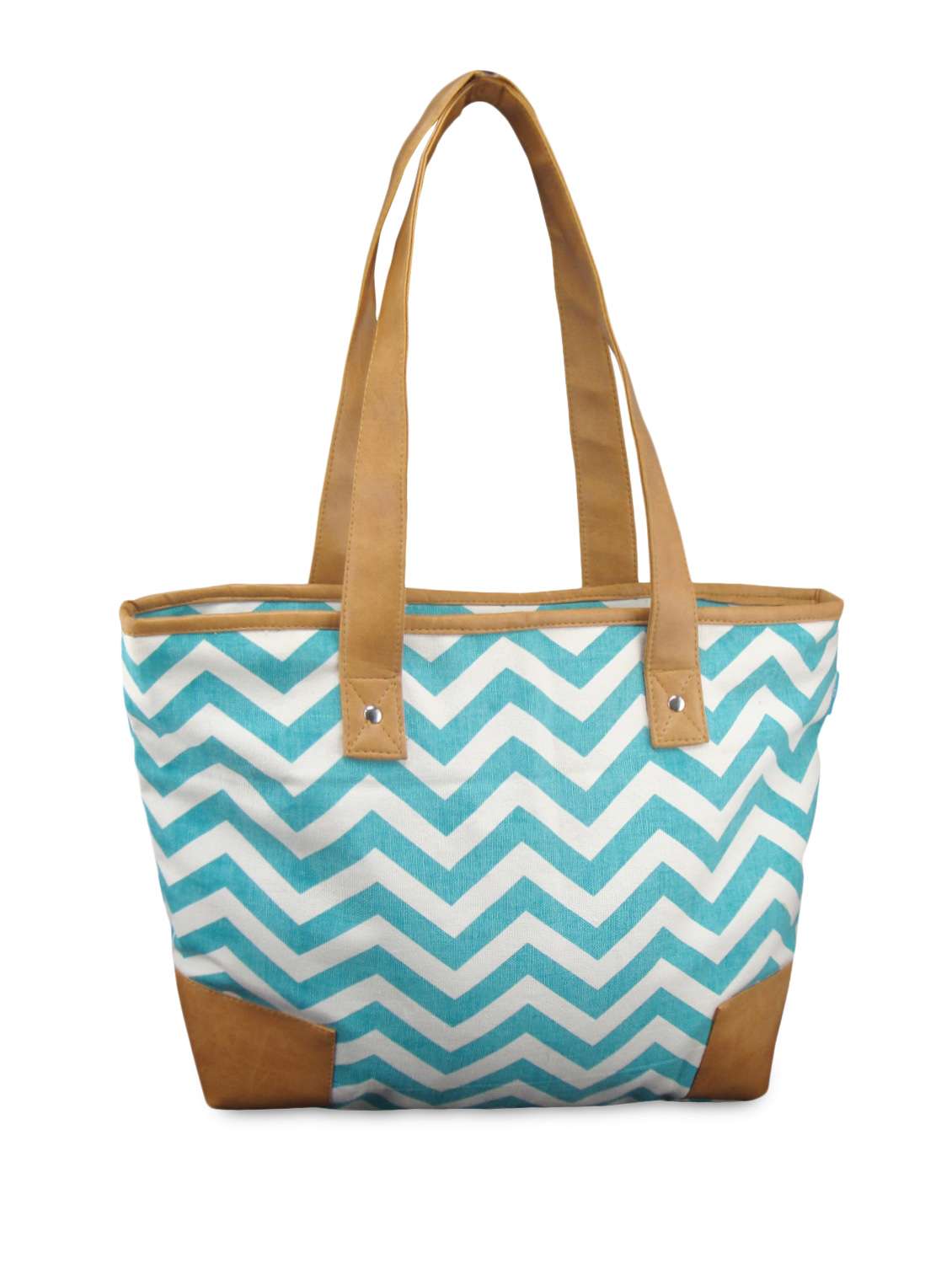 #2 blue and white shevron printed canvas cloth tote bag & इसी तरह के उत्पाद...