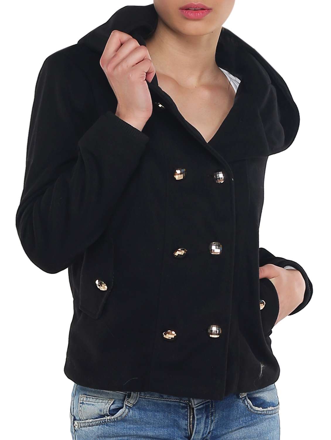 #2 black double breasted hooded jacket & similar products...