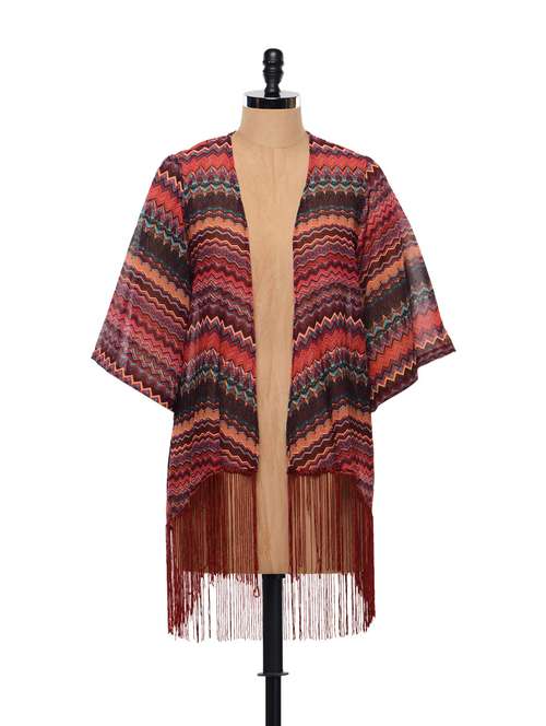 #1 zigzag tribal print fringed kimono & similar products...