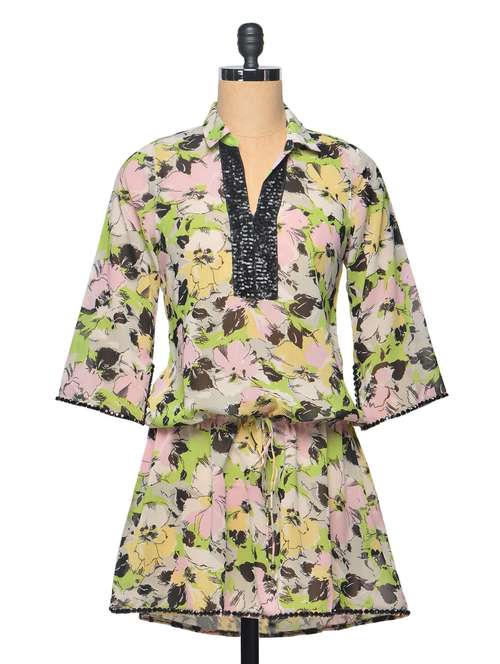 #1 Multi ColourFloral Printed Sequinced Neck Dress & similar products...