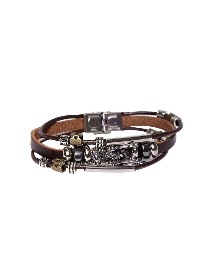 #3 brown silver beaded bracelet & similar products...