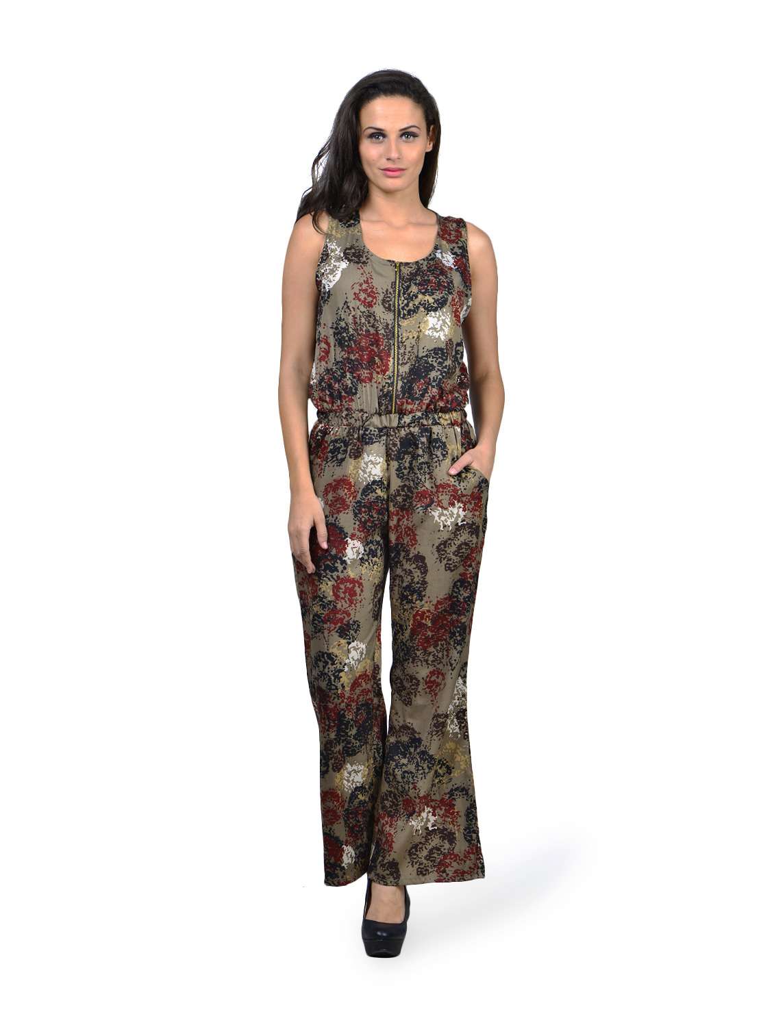 #1 printed brown poly crepe jumpsuit & similar products...