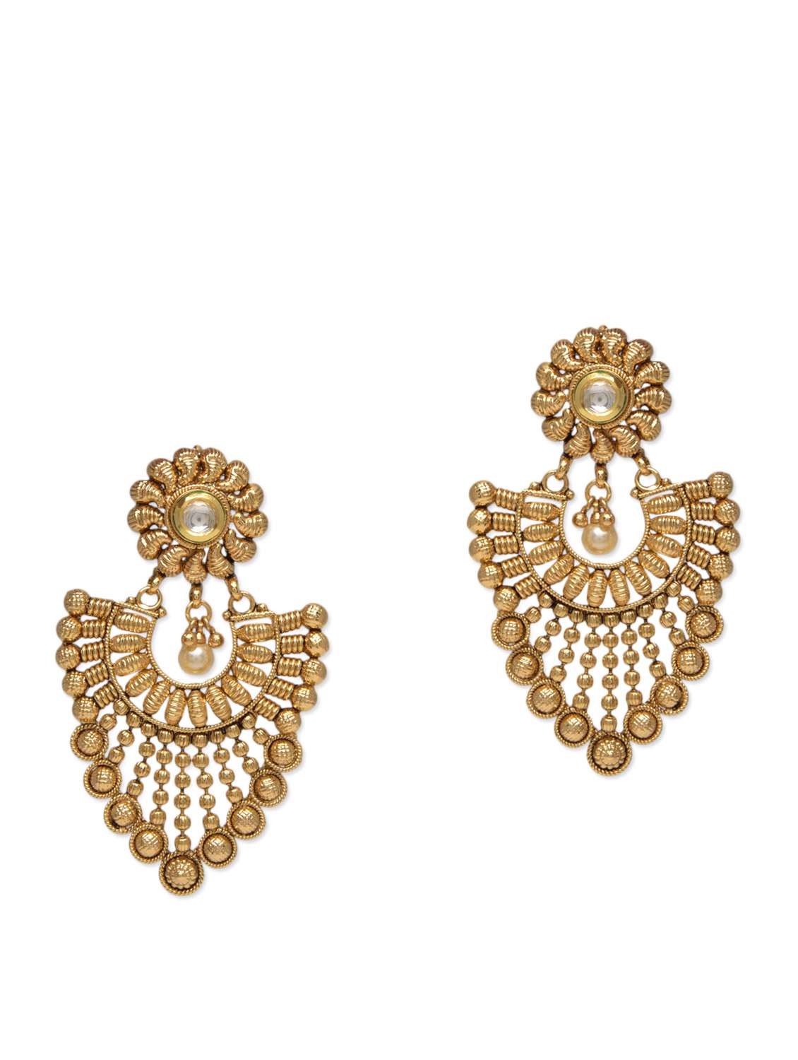 #2 gold metallic embellished pearl kundan worked earrings & similar products...