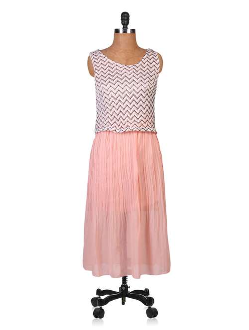 #1 peach printed sleeveless georgette dress & similar products...