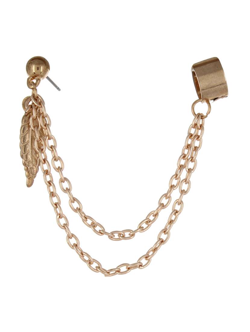 #2 metal alloy stylish golden leaf charm tassels ear cuff for single ear & similar products...