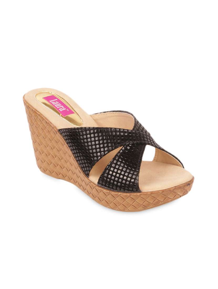 #3 black textured leatherette wedges & similar products...