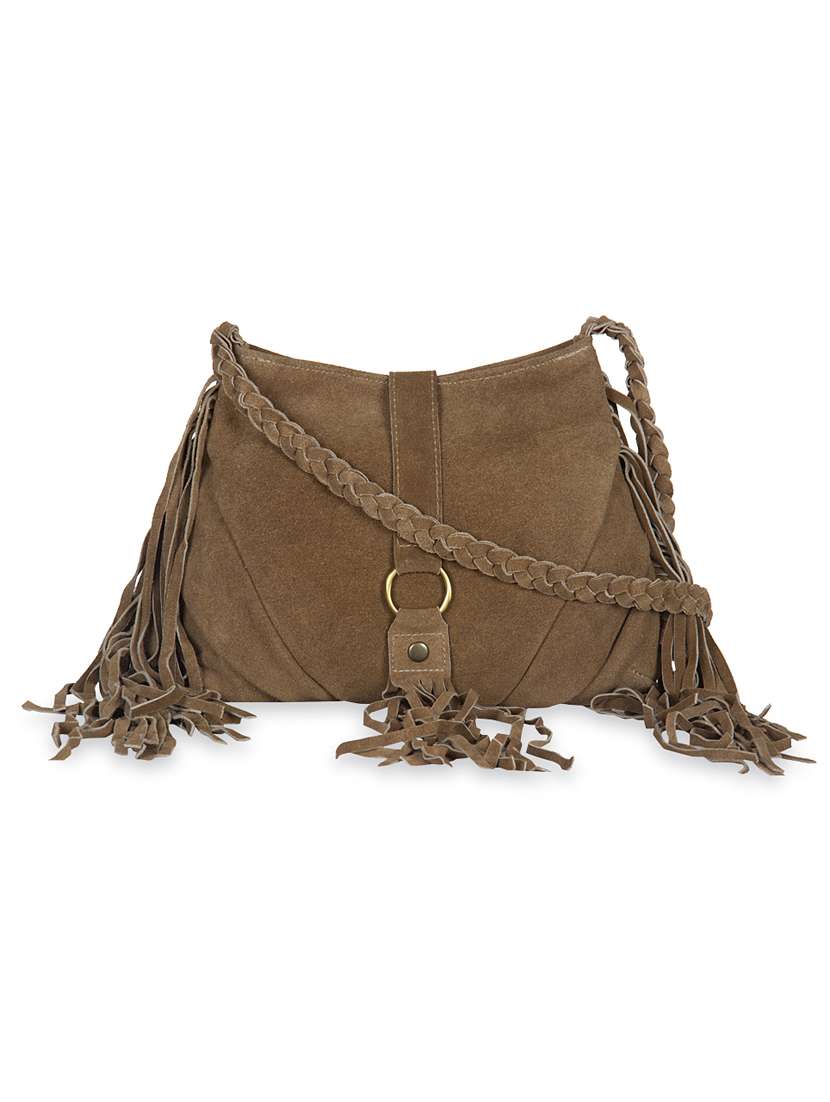 #2 light brown suede fringed handbag & similar products...