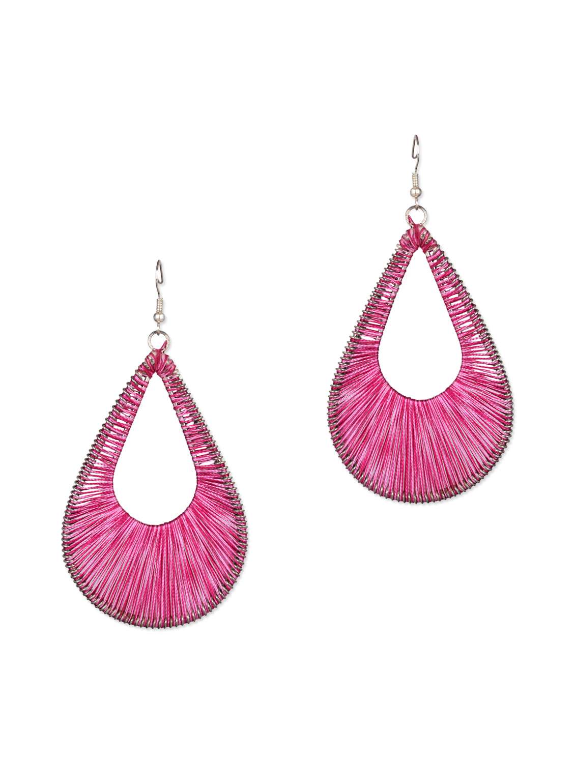 #3 peacock feather inspired pink threaded earrings & similar products...