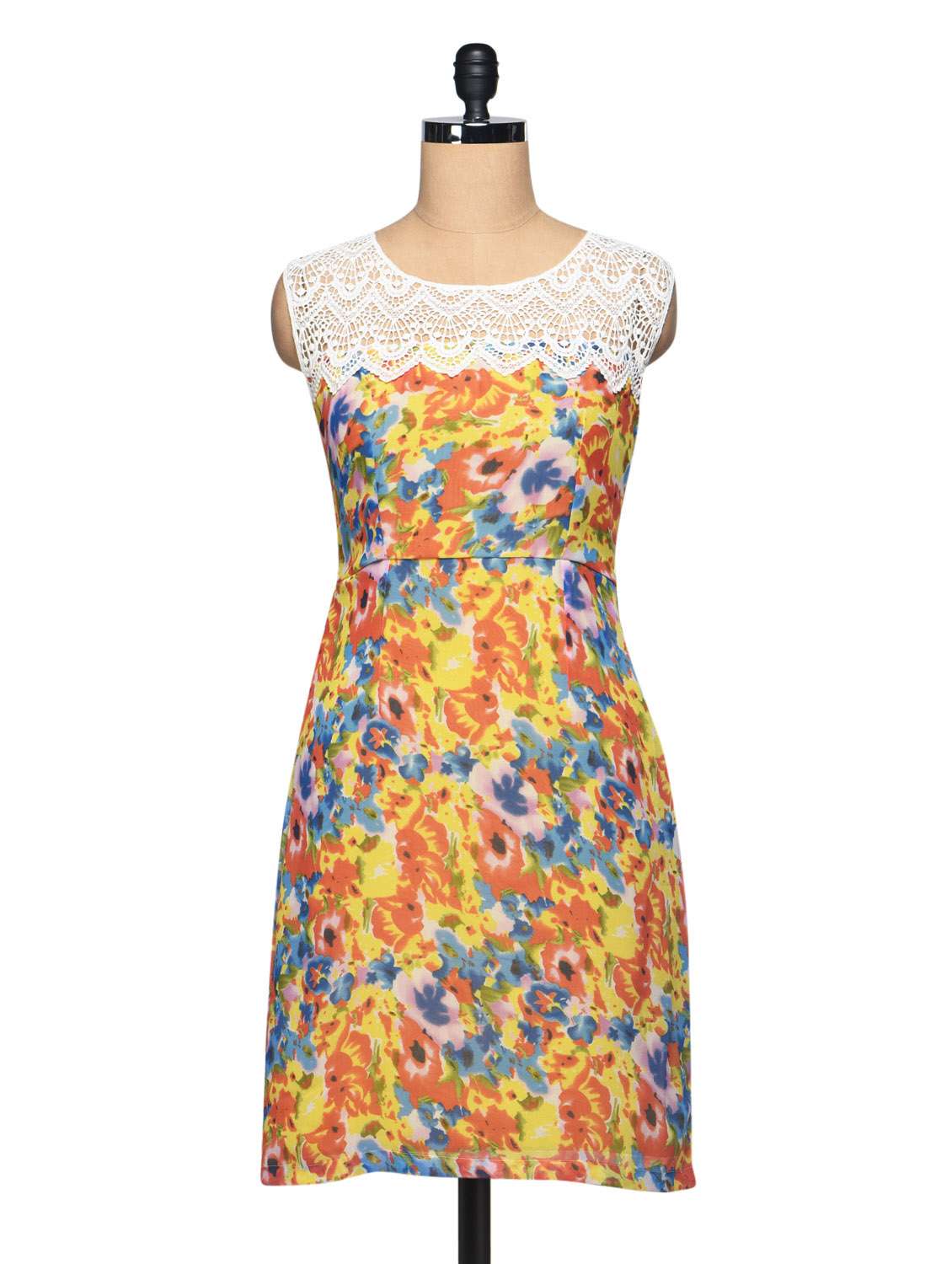 #1 floral georgette & lace sleeveless sheath dress & similar products...