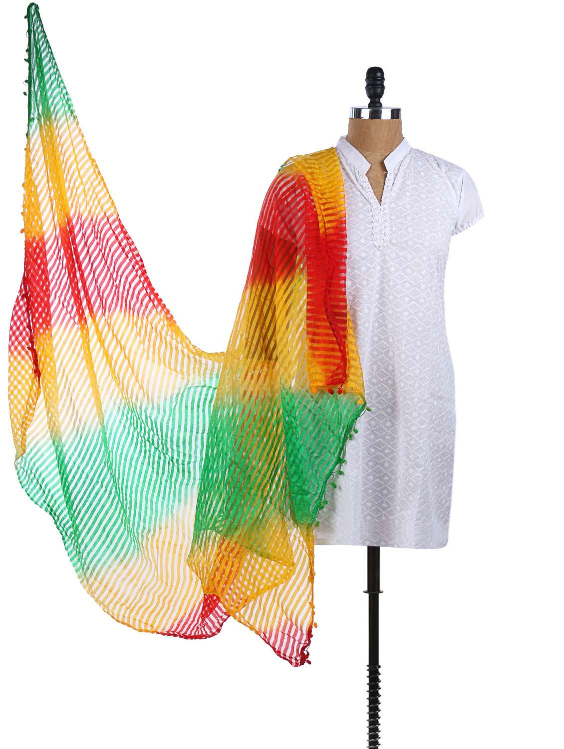 #2 multicolor tissue silk striped pom-pom ball dupatta & similar products...