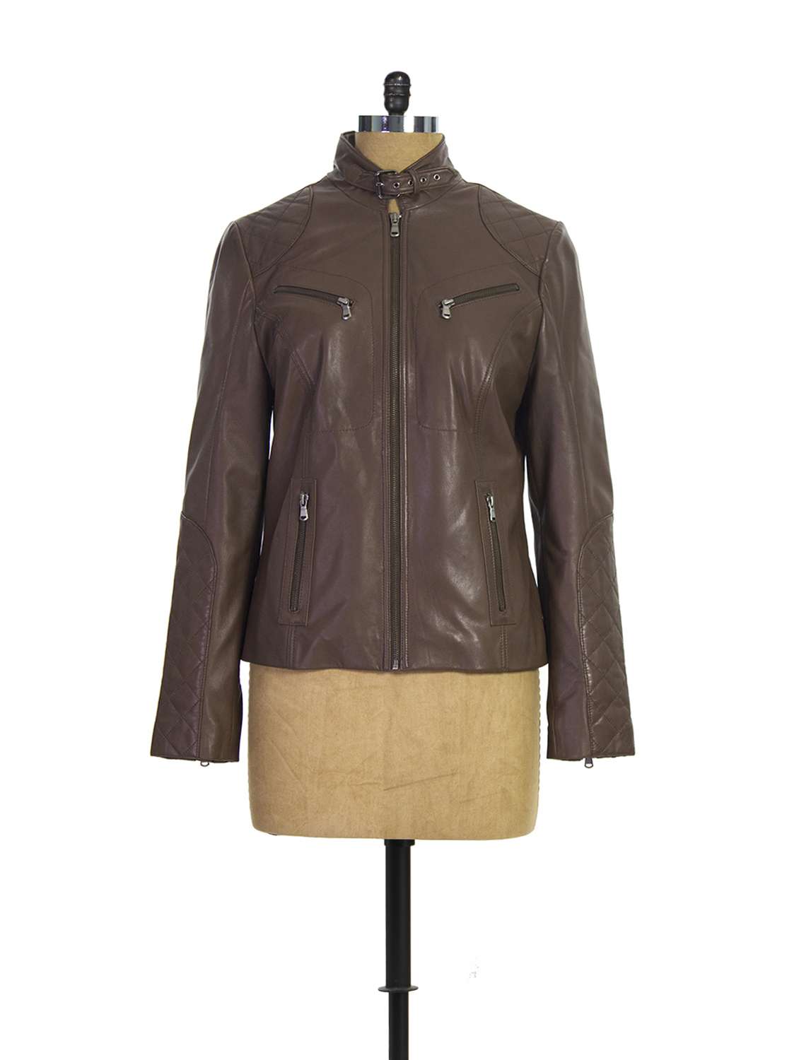 #2 brown zippered leather jacket & similar products...