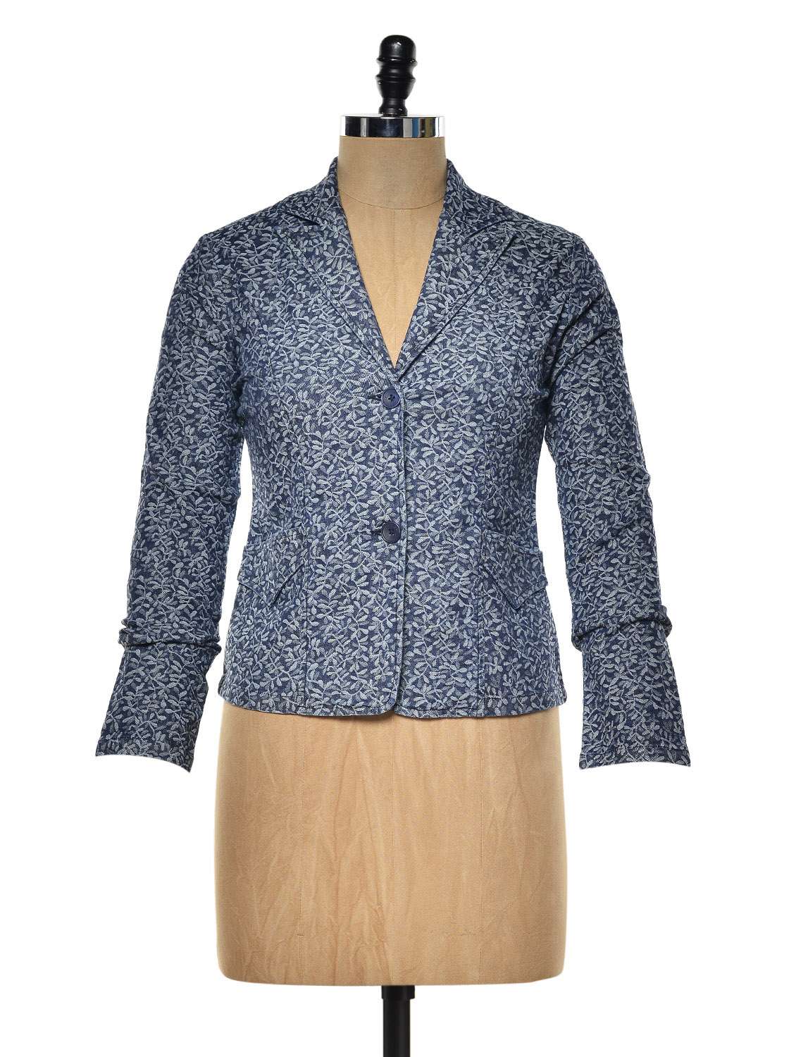 #1 Blue Printed Denim Lycra Jacket & similar products...