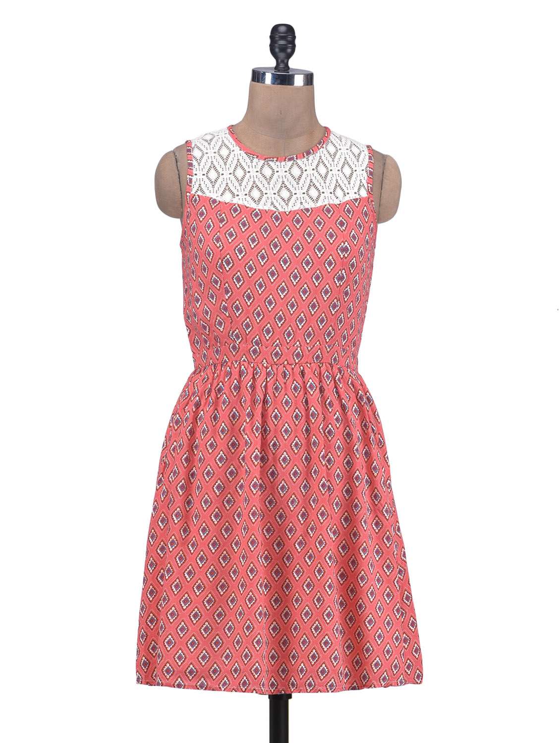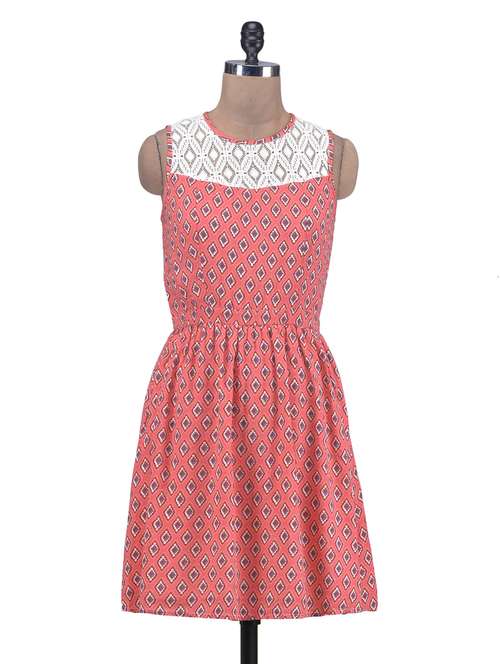 #1 pink printed sleeveless viscose dress & similar products...