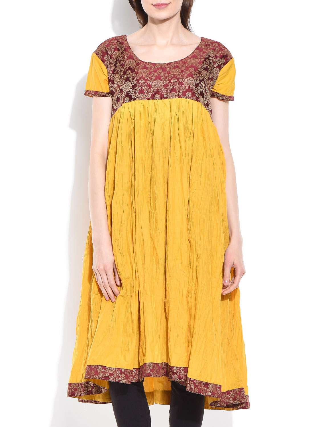 #1 yellow cotton flared kurta & similar products...