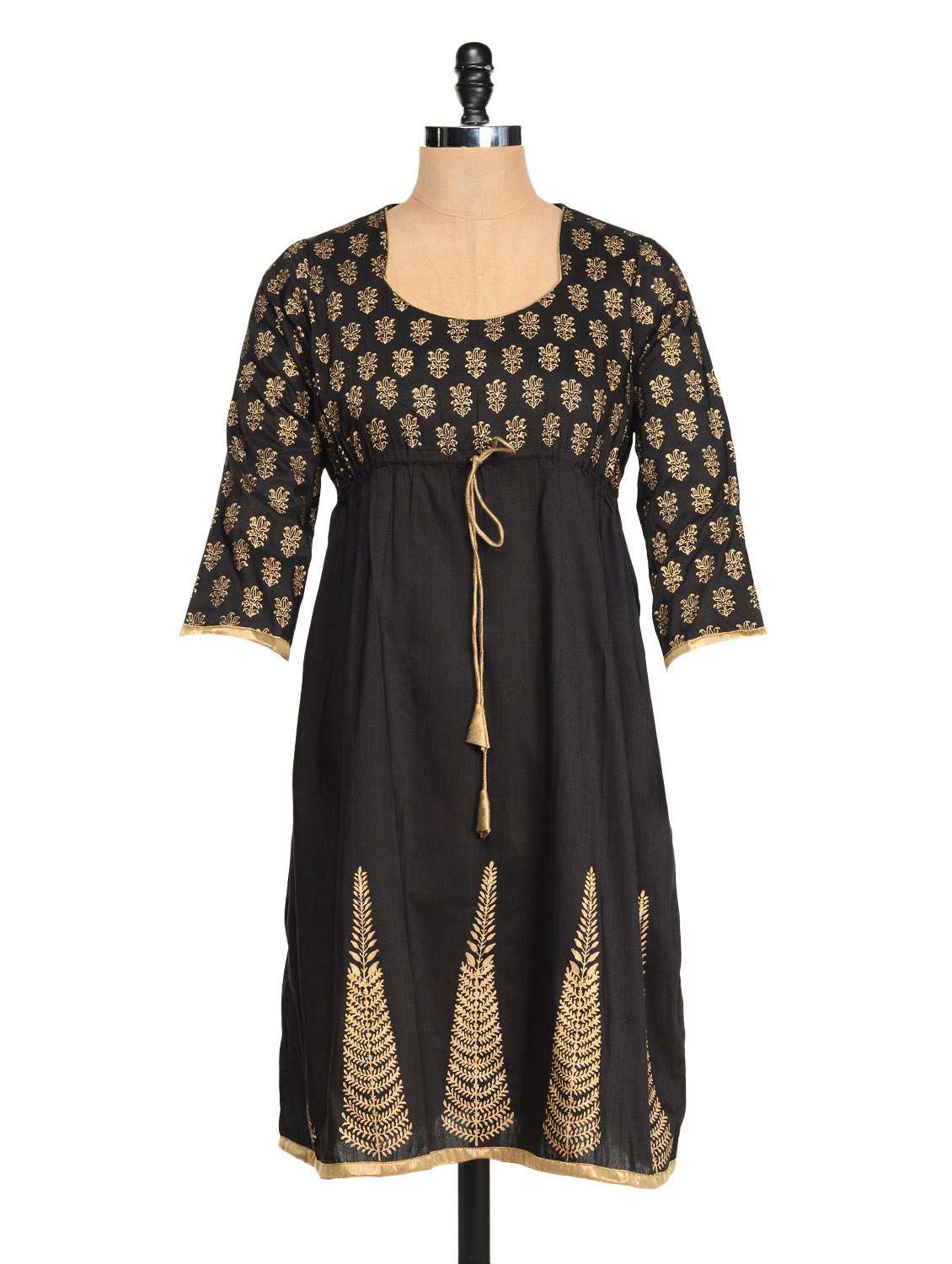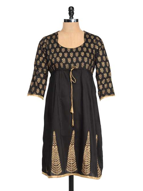 #1 black and gold kurta with a front dori & similar products...