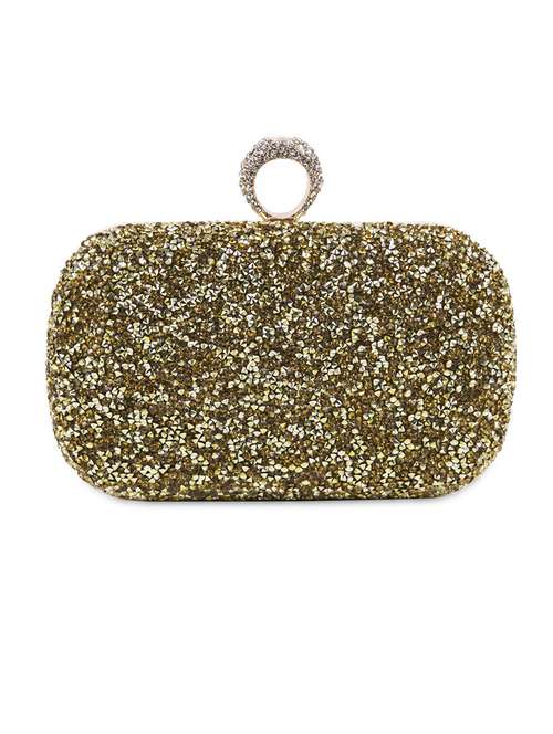 #1 Gold Faux Leather Embellished Clutch & similar products...