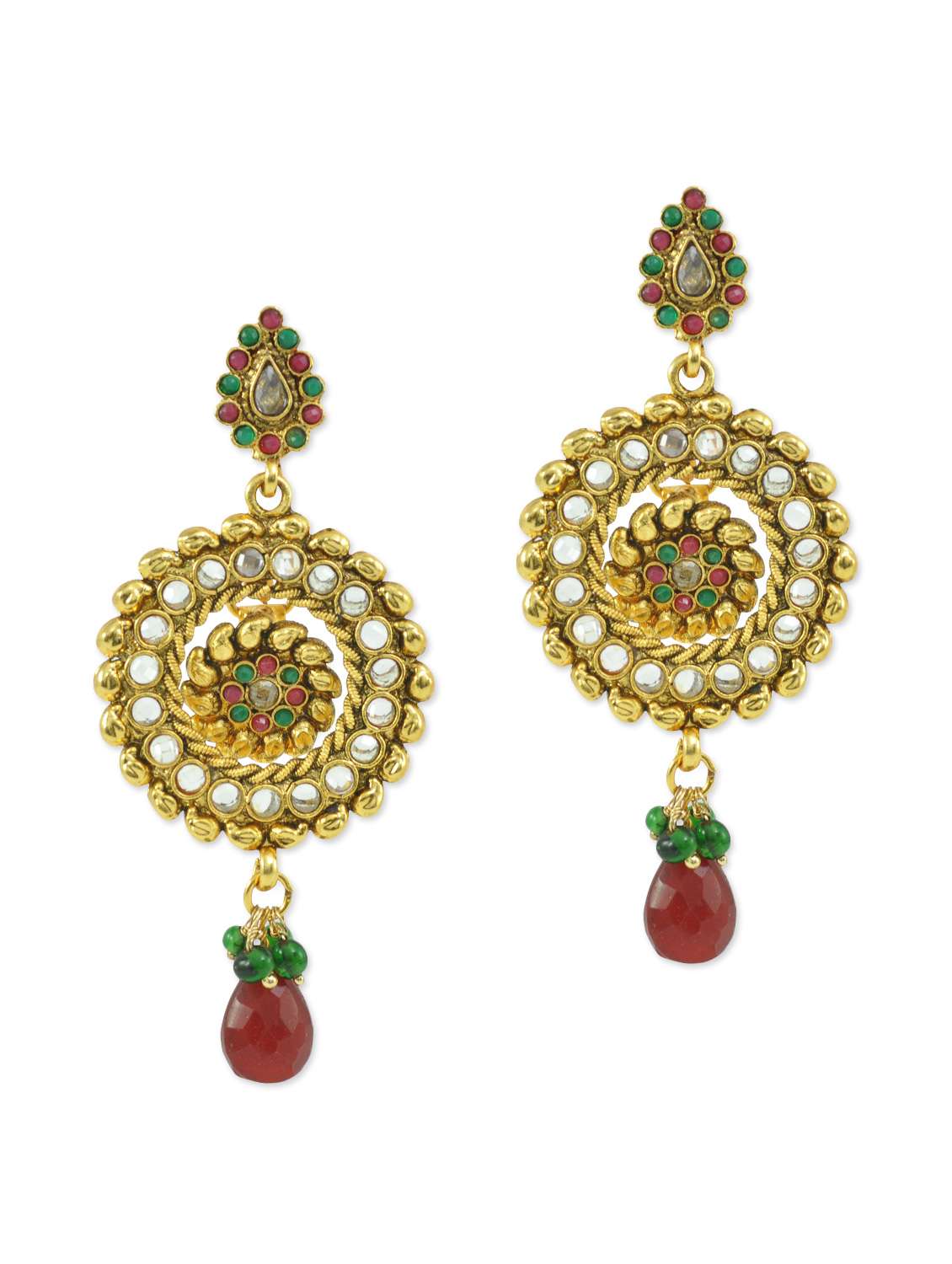 #4 gold circular style dangler earrings with kundan and acrylic beads & similar products...