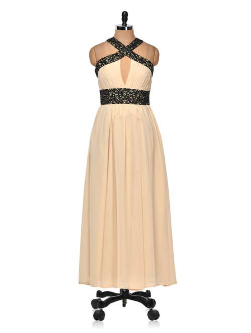 #1 beige evening gown with cross-over neck & similar products...