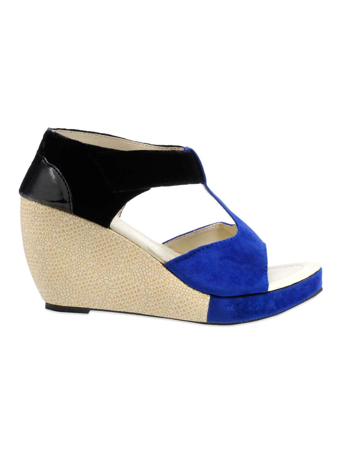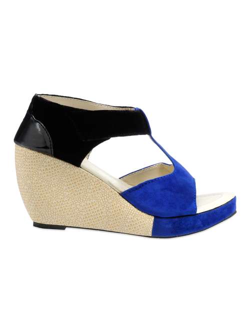 #1 Velvet Blue & Black Color block Open toe Wedges & similar products...
