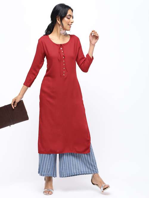 #1 solid placket detail straight kurta & इसी तरह के उत्पाद...