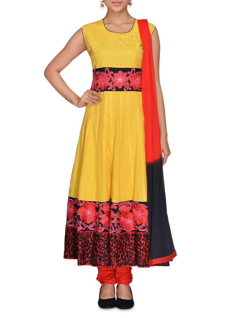 #1 yellow and black cotton stitched suit set & similar products...
