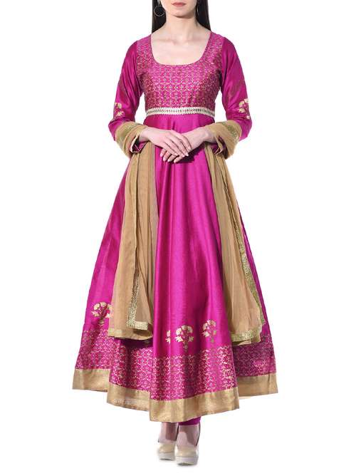 #1 Kaanchie Nanggia Magenta hand block printed dupion silk anarkali suit set & इसी तरह के उत्पाद...