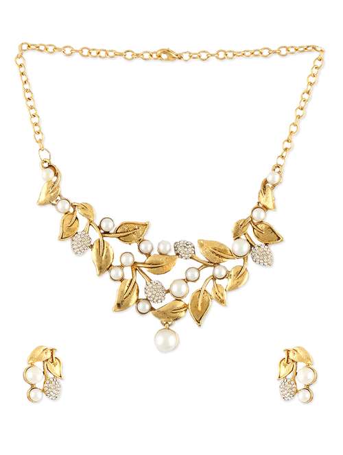 #1 faux pearl and gold leaf necklace set & similar products...
