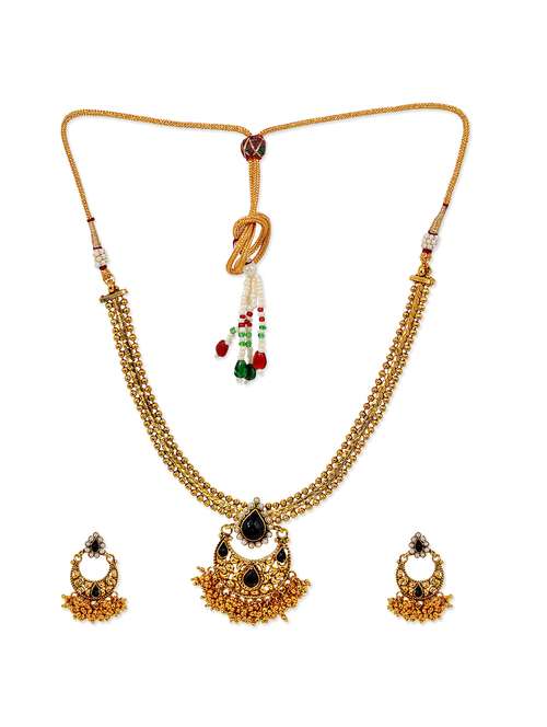 #1 exclusive black micron gold plated necklace set with earrings & similar products...