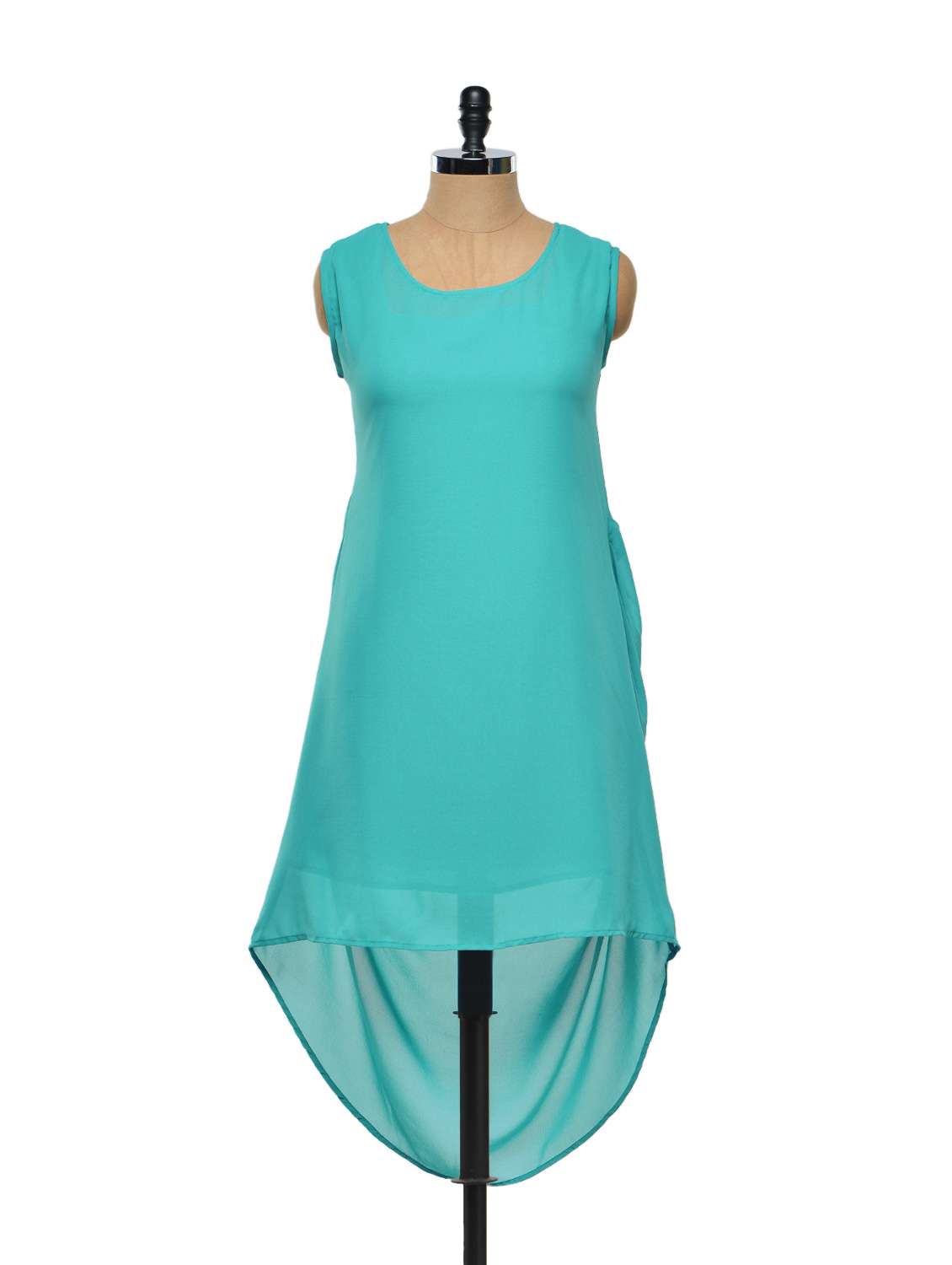 #1 turquoise asymmetrical dress with gathers & similar products...