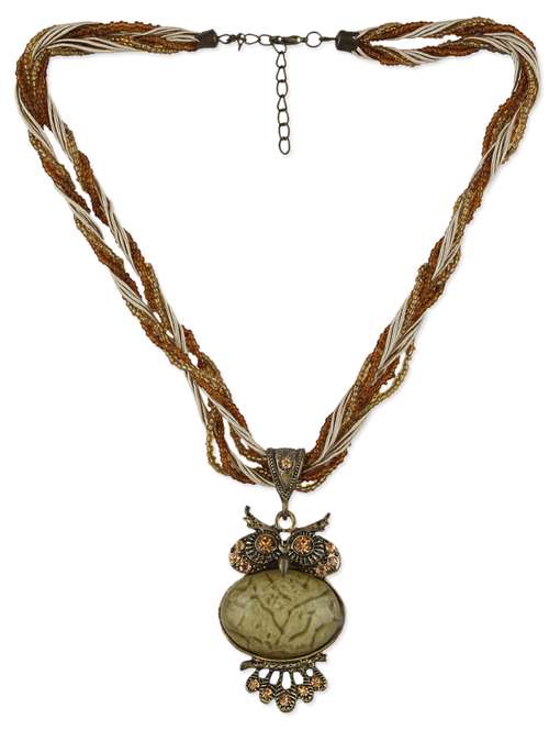 #1 beaded multichain with owl pendant neckpiece & similar products...