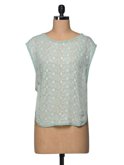 #1 Aqua green sheer embroidered viscose top & similar products...