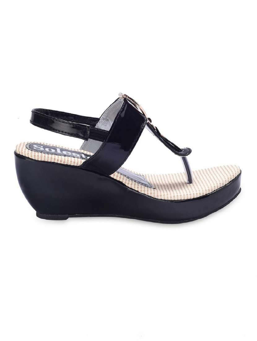 #2 glossy black toe separator wedge heel sandals & similar products...