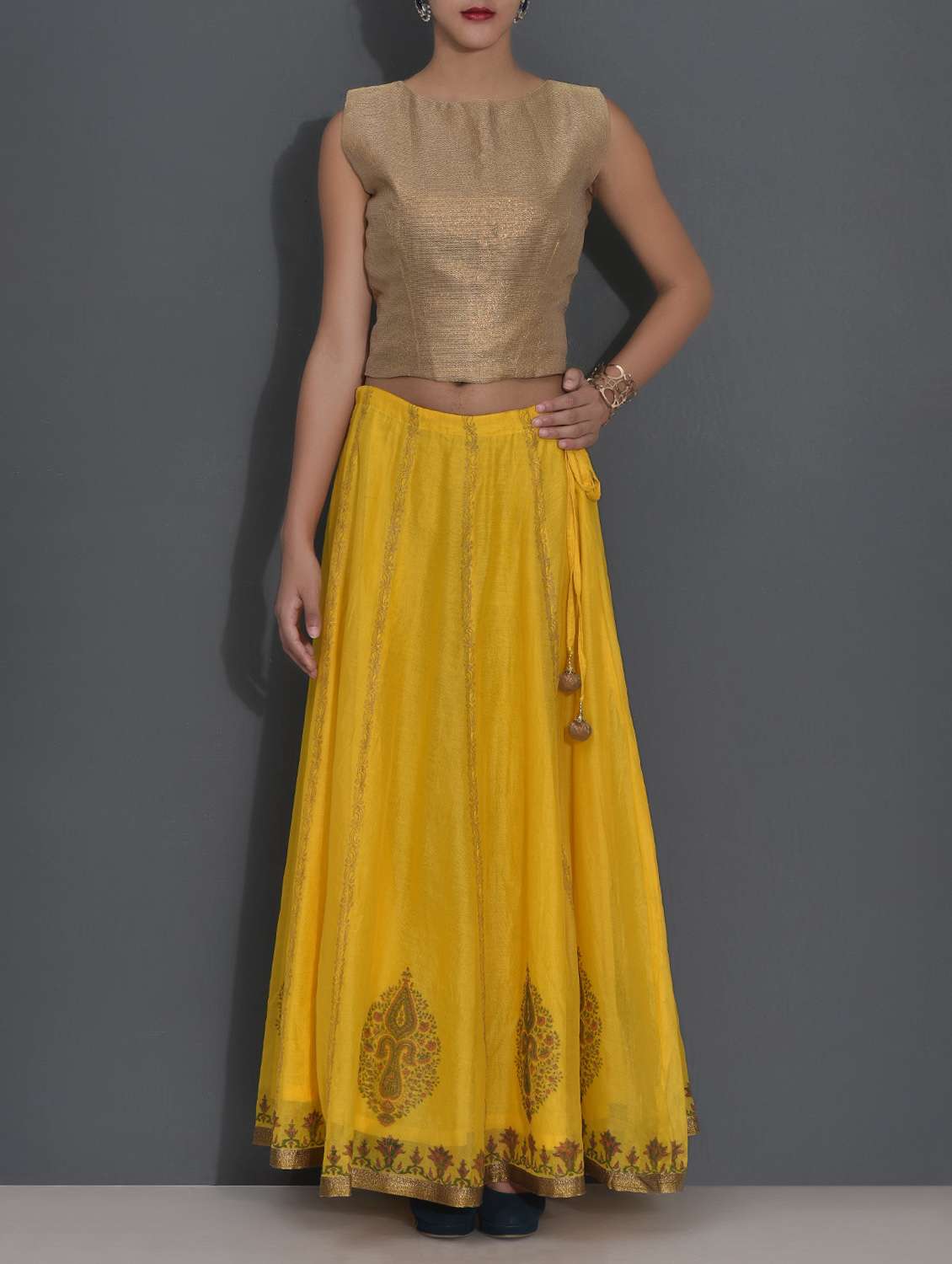 #1 yellow and gold semi brocade crop top-skirt set & इसी तरह के उत्पाद...