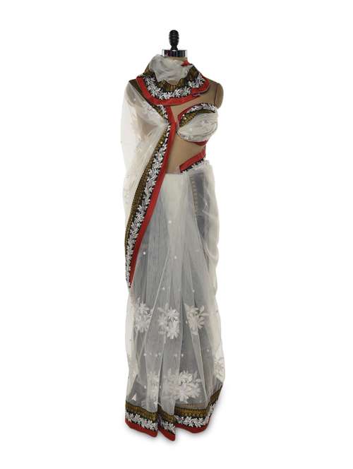 #1 white saree with zari border & similar products...