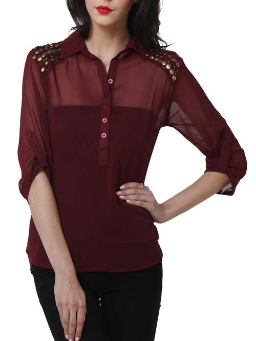 #1 solid maroon shirt embellished with metal studs & similar products...