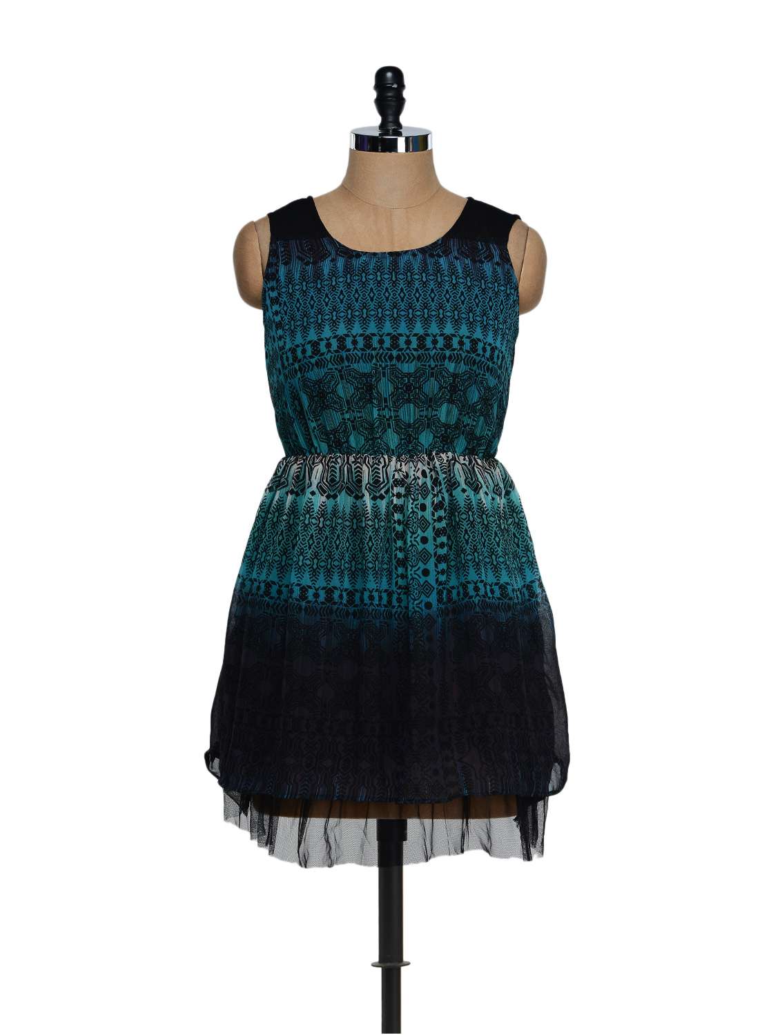 #2 black and blue printed cotton knit top with a net base & similar products...