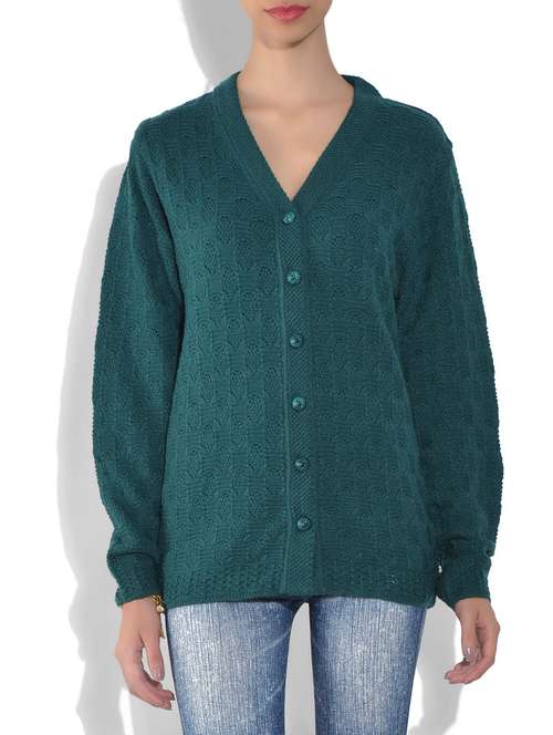 #1 bottle green acrylic wool long sleeves self knit cardigan & similar products...