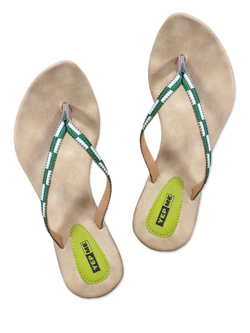 #3 Leatherette Green & White Check Toe Separator Sandals & similar products...