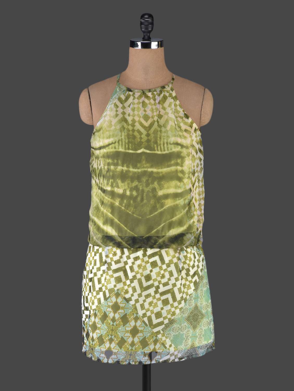 #1 green halter neck printed dress & similar products...