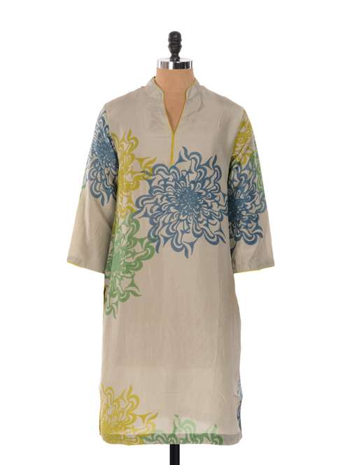 #1 floral print grey silk kurta & similar products...
