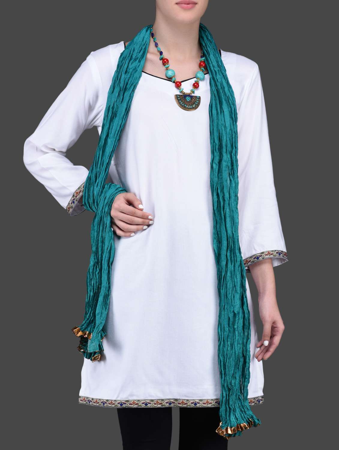 #2 turquoise jeweled poly silk stole & similar products...