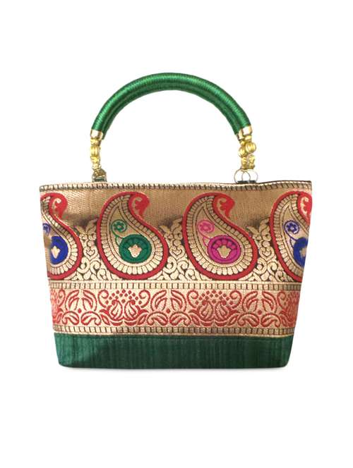 #1 multi colored raw silk handbag with traditional paisley border & similar products...