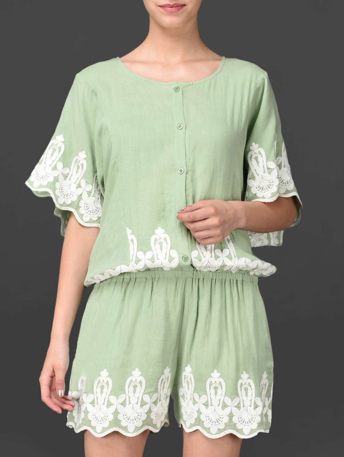 #1 Pastel Green Embroidered Cotton Jumpsuit & similar products...