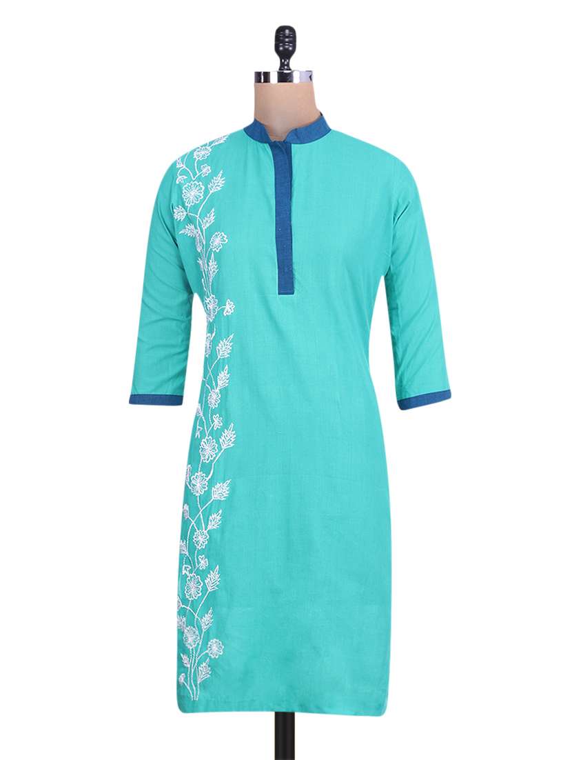 #1 blue cotton three quarter sleeved long kurta & similar products...